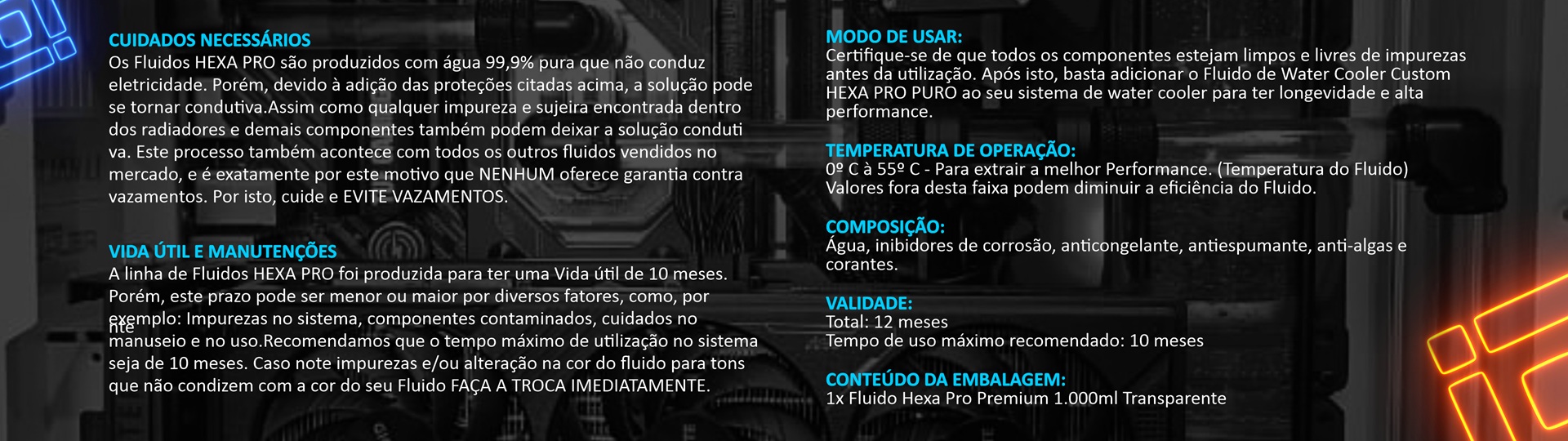 Os Fluidos Power UP HEXA PRO foram desenvolvidos em laboratório por profissionais que entendem do assunto e após passarem por longos e rigorosos testes de qualidade foram finalmente finalizados e estão prontos para extrair o máximo de desempenho e durabilidade do seu sistema de water cooler.