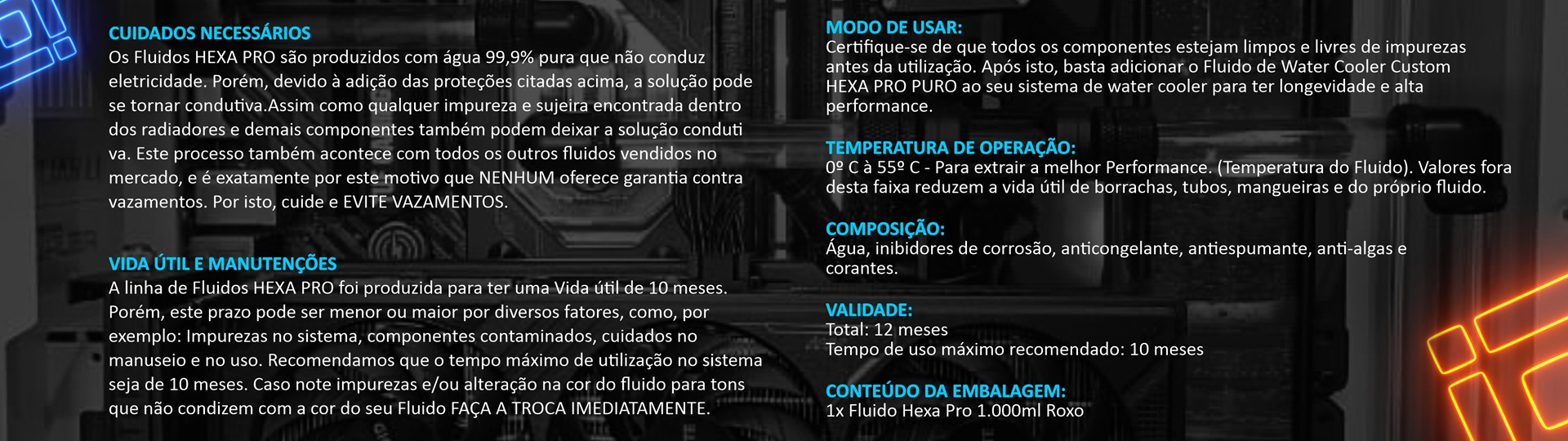 A linha de Fluidos HEXA PRO são a solução perfeita para o seu sistema de Water Cooler Custom e Water Cooler Selado (AIO).