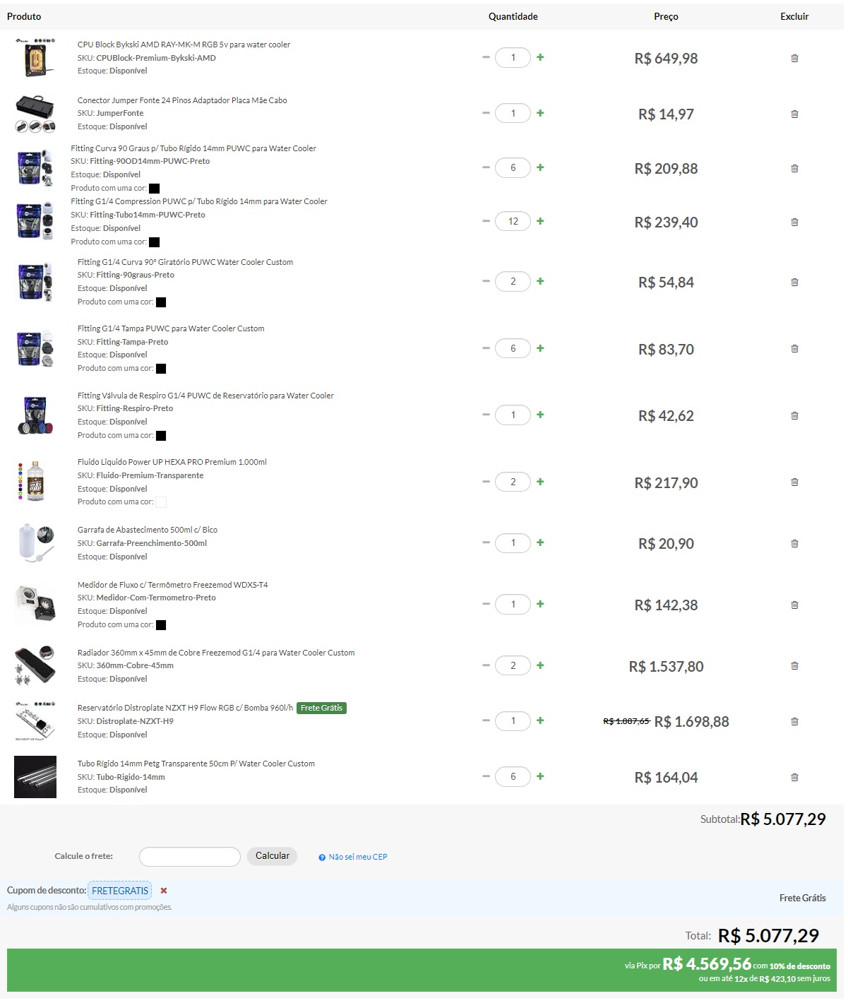 Monte o seu Water Cooler Custom ou Modifique o seu Water Cooler Selado com a Maior Empresa Especializada no Assunto do Brasil. Tenha Alta Performance, Eficiência Térmica e Consquiste o Máximo Desempenho de suas peças. Pare de Sofrer com Altas temperaturas, Preserve a Vida útil de Seus Hardware Quanto antes.