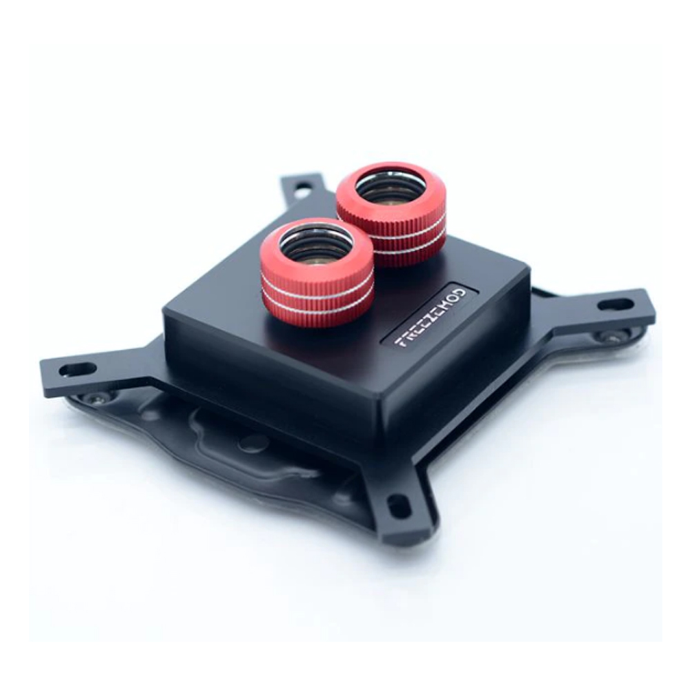 O CPU block ou waterblock é o componente responsável por realizar a transferência de calor do processador para o fluido refrigerante. Ele fica acoplado em cima do processador.